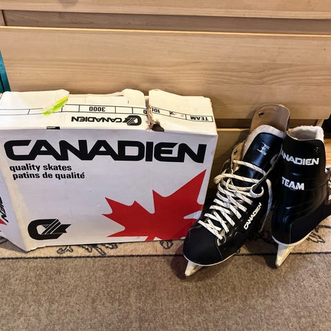 Canada 3000 Jääkiekko luistimet, koko 47. Luistimet on suunniteltu jääkiekkoon, mustavalkoisella värityksellä ja punaisilla yksityiskohdilla. Sopivat jääkiekkoharrastukseen ja -pelaamiseen.