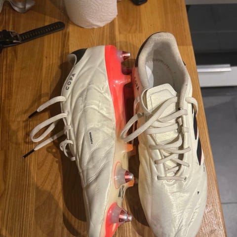 Kaksi kertaa käytetyt Adidaksen nappikset. Käytin kaksi kertaa tekonurmella, joten nappiksissa hieman mustaa väriä. Nappikset täydellisessä kunnossa. Ostettu Unisportista, löytyy kuitti.