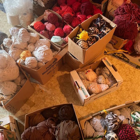 Käyttämätön kerä tumman harmaata maton kudetta - 600g.