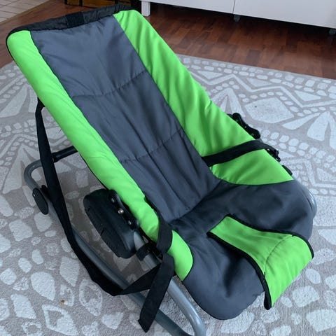 Hyväkuntoinen sitteri. Kantoremmit, ei säätömahdollisuutta. Päällinen helppo irrottaa ja pestä.