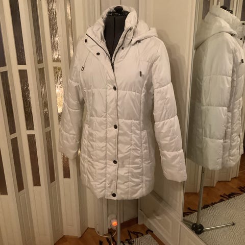 Vähän käytetty Luhdan toppatakki. Koko D48. Irrotettava huppu. Pituus niskasta 80 cm. Leveys k-k 69 cm Helmassa kiristys