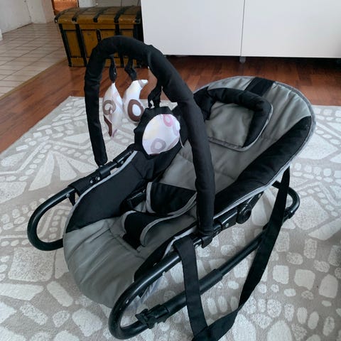 Hyväkuntoinen, säädettävä sitteri kantoremmeillä. Irroitettava päällinen.