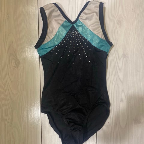 Upea samettinen jumppapuku. Napakka materiaali ja kapea malli. Ei kokomerkintää mutta menee arviolta 104-110 kokoa käyttävälle.