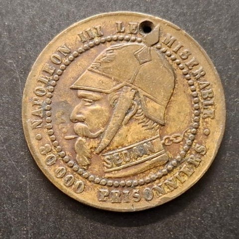 Ranska. Napoléon III. 5 Centimes (module) 1870. Monnaie satirique, Sedan ()