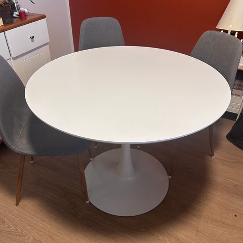 Muuten moitteeton,mutta pinnassa pari haaleaa väriläiskää lapsen askarteluista. En tiedä voisko ne lähteä jollain myrkyllä.