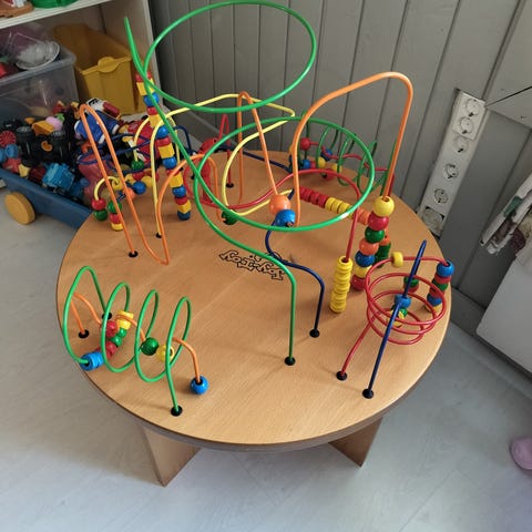 Uudenveroinen Stokke leikkipöytä, uutena meille ostettu Wauva.com, sis. 3kpl uudenveroisia IKEA täyspuisia lastenjakkaroita.