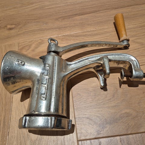 Siistikuntoinen klassinen sosemylly, ehjä, terät tallella