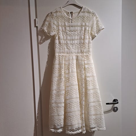Pari kertaa käytetty musta & Other stories Paris Arelier -pitsimekko, jossa upea avoin selkä. Päälikangas 42% puuvillaa, 31% polyamidia ja 27% viskoosia.