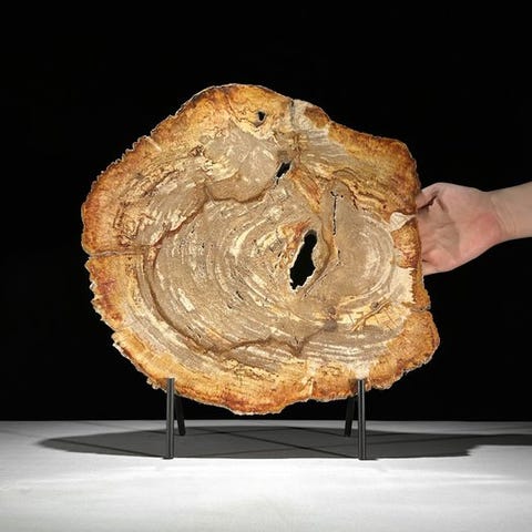 Kaunis kiillotettu kaareva kuu, tehty karkeasta rubiinista, omalla jalustallaan.