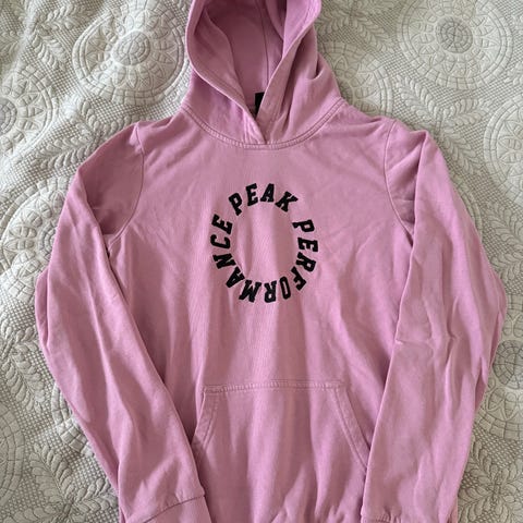 Vaaleanpunainen Peak Performance -huppari. Koko S.