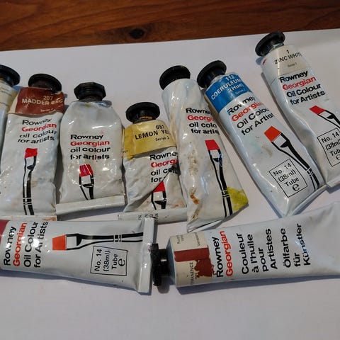 Winsor & Newton öljymaalit. Winton maaleista taitaa kaikissa olla korkit jumittuneet. Maalit tarvitsevat varmaan ohentamista, mutta eivät ole kokonaan kuivuneet. 8 tuubia . Taidemaalaus öljyväri taide