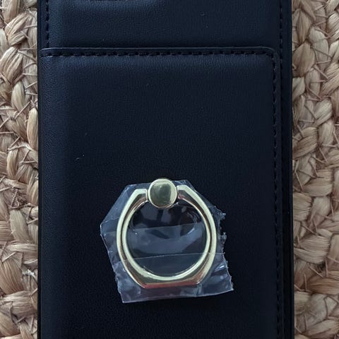 Uusi iPhone 16e musta kuori jonka takana magneetilla kiinnittyvä lompakko. Sopii hyvin käteen. Lompakon päälle mahtuu yksi kortti, joten kätevästi tarjolla ettei aina tarvitse edes avata lompakkoa.