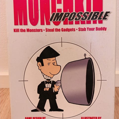 Kohtalaisessa kunnossa oleva korttipeli. Yhdessä kortissa on kuvapuolella jälkiä ja laatikon kannessa on kulma revennyt. Muuten kaikki kortit, ohjeet ja noppa tallella.