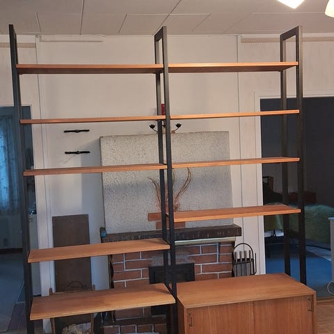 3 päätyä joista saa tehtyä hyllyä 19m2 5kpl hyllyä 180cm ja 5kpl 200 cm. 18mm filmivaneria hyllylevyt. Kuvassa 180cm hyllyt kasattuna muut osat ei ole ollut minulla käytössä. Nopeat kaupat! Samanlainen hylly rastec.fi 1800€!