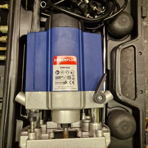 Yläjyrsinkone Scheer HM 14 teho 1200W kierrokset 18000 min, valmistusmaa Saksa. Ohjaimet ohjausrenkaat terät.