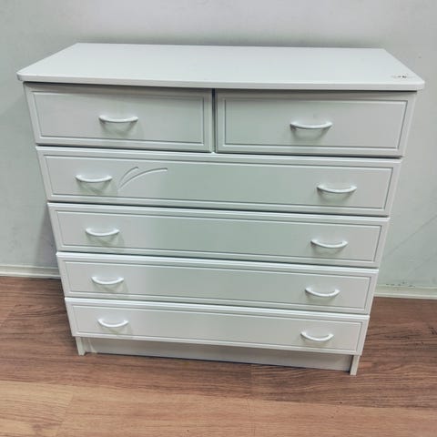 Valkoinen lipasto 3 isoa laatikkoa ja 2 pientä laatikkoa. Kunto hyvä.