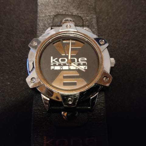 Kuvan mukainen kello myynnissä. Patteri loppu, joten toimivuudesta ei tarkkaa tietoa. HUOM naarmu lasissa, joka ei näy kuvissa.