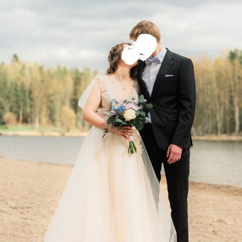 The dress includes a train that gives it a bridal, ceremonial feel and looks especially beautiful in photos. Lightweight fabric, comfortable to wear, and flattering on the waist.