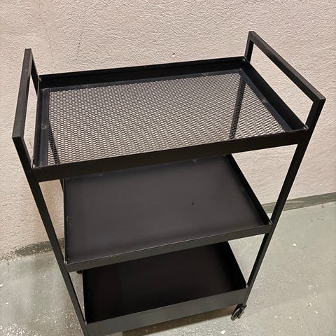 Ikean hyllykkö. https://www.ikea.com/fi/fi/p/nissafors-tarjoiluvaunu-musta-20399777/