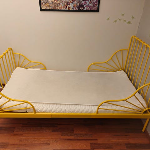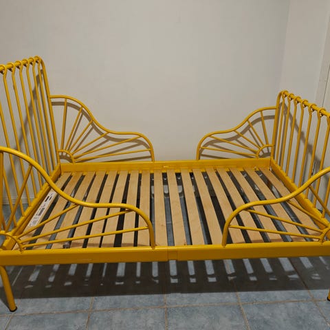 Myydään musta jatkettava Ikean Minnen sänky ilman patjaa. Jatkettavissa 80x200cm asti. Tällä hetkellä purettuna, joten kuva netistä.