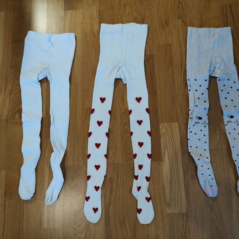 Myydään Lindexin sukkahousut. Kokolappu 110/116, mutta vastaa mielestäni enemmän tuplakoon pienempää kokoa. Ehkä jopa 98 / 110. Yhden lapsen käyttämät, mutta näissä pintanukkaa sekä pepun kohdalla reikä. Meillä lähtökohtaisesti hajusteeton pesu, ei lemmikkejä.