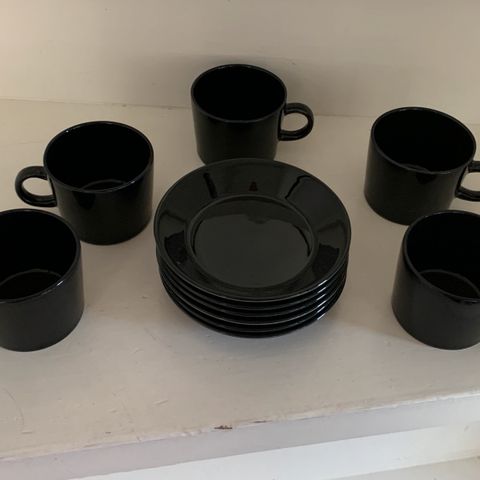 Myydään kuvan kahviastiasto 6 hengelle.kupit,tassit,alulautaset,kermakko/maito,sokerikko ja 2kpl isompia lautasia.siistit ja ehjät.käteinen/nouto.