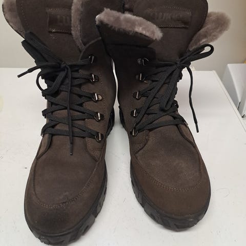 Hyväkuntoiset talvikengät. Mokkanahkaa ja vuori 100% lampaanvillaa. Pohjallisen mitta 25,5 cm.