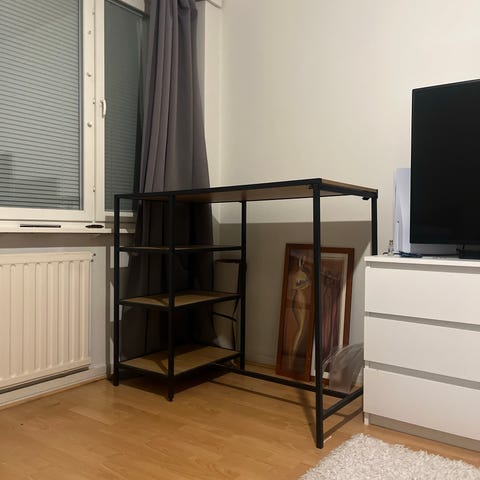 Jyskin tamholt työpöytä, hyvässä kunnossa muuten mutta pinnassa vähän kolhua (kuva), laatikko ja avoin osa. ovh 129€