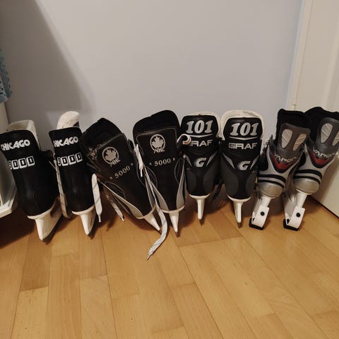 Viime talvi luisteltu, lähinnä koululiikunnassa. Teränsuojat EI kuulu kauppaan.