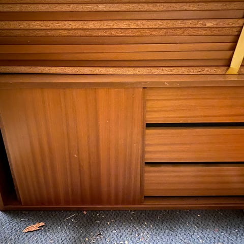Hylly on hyvässä vintage-kunnossa, normaalia ikään liittyvää patinaa.