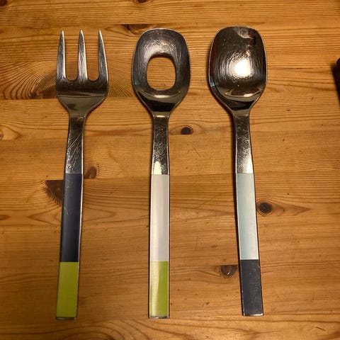 Hackminna aterimet: 6 kpl ruokalusikoita, 6 kpl haarukoita ja 6 kpl veitsiä. Vain nouto.