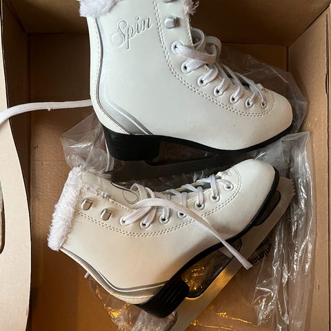 Spin lasten luistimet koko 30 valkoinen. Soveltuvat muuhun luisteluun. Luistimissa valkoinen väri ja nauhakiinnitys. Nouto Laajasalosta. Maksutapa käteinen/mobile pay