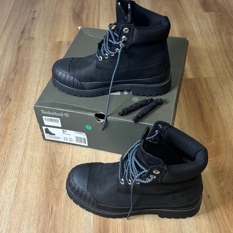 Käytännössä uudet laadukkaat Timberin varsikengät. Vedenpitävät mokkanahka jalkineet jotka sopivat niin reippaaseen ulkoiluun talvella kuin farkkujen kanssa kaupungille. Uusien ovh 205€ jos niitä vielä jostain löytää uutena. Tästä saat hienot monot myös kovaan käyttöön vuosiksi eteenpäin.