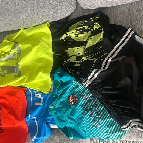 Poikien vaatepaketti, hihattomat t-paidat (hyväkuntoiset, siistit) toinen s- ja toinen xs-koko, uikkarit 164 cm, urheilushortsit 164 cm, toisessa lahkeessa läiskiä, ei lähde pesussa pois.