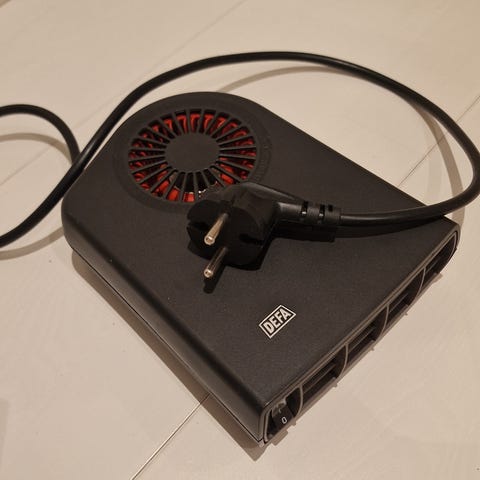 Hyllyyn jäänyt termini. Purettu pois autosta ennen myyntiä 1400w ei kuittia tallessa eikä muistikuvaa kuinka vanha puhalsi lämmintä testatessa.