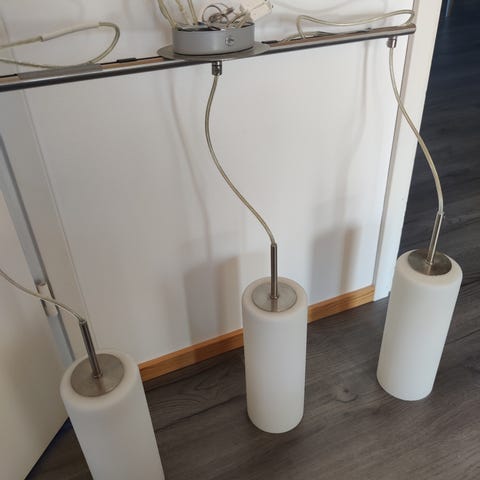 Myydään kaunis kattovalaisin, jossa lämpimän valkoinen valo. Läheltä tarkasteltuna johtokuvussa on havaittavissa pieni naarmu (näkyy kuvassa), mutta kattoon asennettuna sitä ei huomaa. Muuten lamppu uuttavastaavassa kunnossa ja toimii moitteettomasti. Lampun halkaisija 47 cm.
