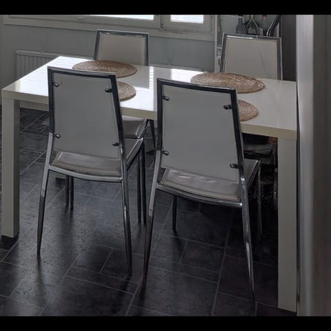 Tuoleista päälliset hieman rikkoutuneet, näkee kuvasta.