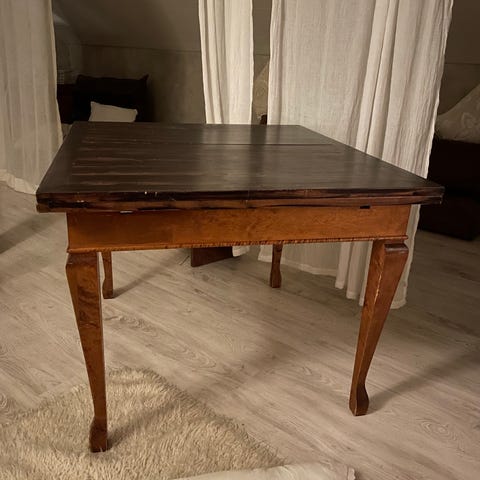 Suht hyväkuntoinen ruokapöytä. Jatkettava. Jatkopala on muistaakseni 40cm.