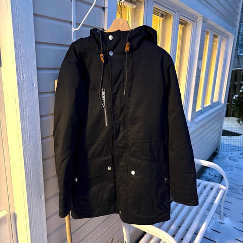 Myydään Elvinen parka tyylinen talvitakki. Takissa on vahakangas,joka kestää koviakin pohjoismaiden sääoloja. Tyylikäs ja ajaton takki seuraavalle. Jäänyt itselle pieneksi.