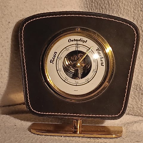 Perinteinen ilmapuntari , jossa lämpömittari ja kello. Korkeus 60 cm. Hp 20 e