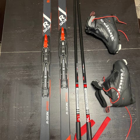 Myydään hyväkuntoiset Rossignolin pitokarvasukset. Pituus 150cm, sidetyyppi NNN. Sauvojen pituus 110cm.