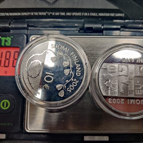 Kolikot toimitetaan suojakoteloissa (kotelo lisää vain vähän painoa).