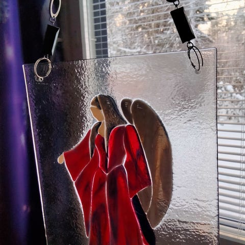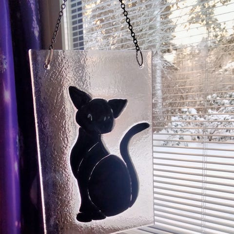Lasitaulu joka valmistettu sulatuslasista,Taulussa väreinä mm. keltaista,oranssia,harmaata,mustaa,pohjana kirkas lasi.koko KxL 30x35 cm