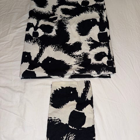 Finlaysonin pesue-pussilakana. On aika vanha ja värit haalistunut, viimeisessä kuvassa vieressä uudempi tyynyliina vertailun vuoksi:) Pesty hajusteettomalla pesuaineella + hajustetulla pyykkietikalla.