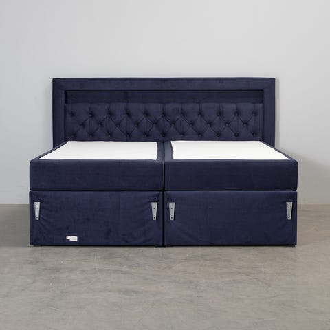 Tyylikäs ja mukava sänky beigellä polysteriverhoilulla. Sänky koostuu kahdesta rungosta, sängynpäädystä, petauspatjasta ja jaloista. Patjan kovuus: kova / kiinteä.
