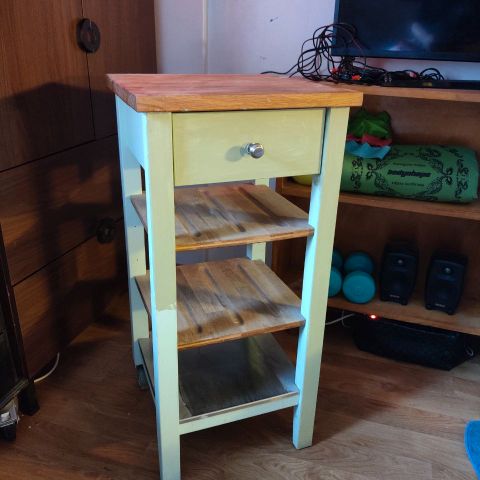 Myynnissä kätevä taso pyörillä. Helposti ekstra säilytystilaa hyllyistä vaikka astioille.