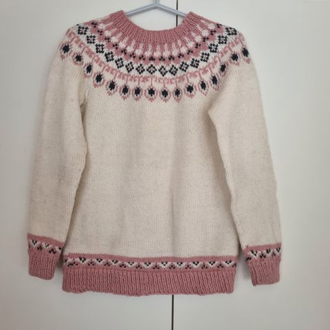 Ihana islatilaisneule. Teetetty omalle lapselle mutta jäi heti pieneksi ennenkuin ehdittiin käyttää. Kuvan malli on 150 cm pitkä. Langoista en valitettavasti osaa tarkemmin kertoa sillä paita tosiaan teetetty mutta tosi lämmin ja paksu on. Ps. Meillä on toinenkin vastaavan kokoinen mutta tummempi islatilaisneule myynnissä. https://www.tori.fi/35642101