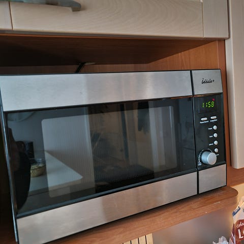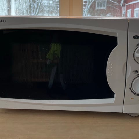 Tehokas vanha mikro! Mikroaaltouunissa on perustoiminnot ruoan lämmitykseen ja sulatukseen.