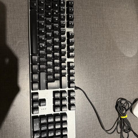 Tietokoneen näppäimistöön kiinnitettävät tarrat, joilla saa dvorak-näppäinten paikat näkyviin.