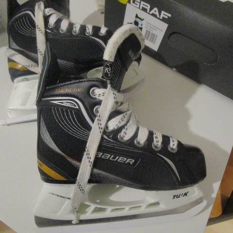 Bauer hokkarit. Muuten hyvässä kunnossa, mutta kärjessä kulumaa. Terät hyvässä kunnossa. Ainoastaan nouto (Hannunniittu)